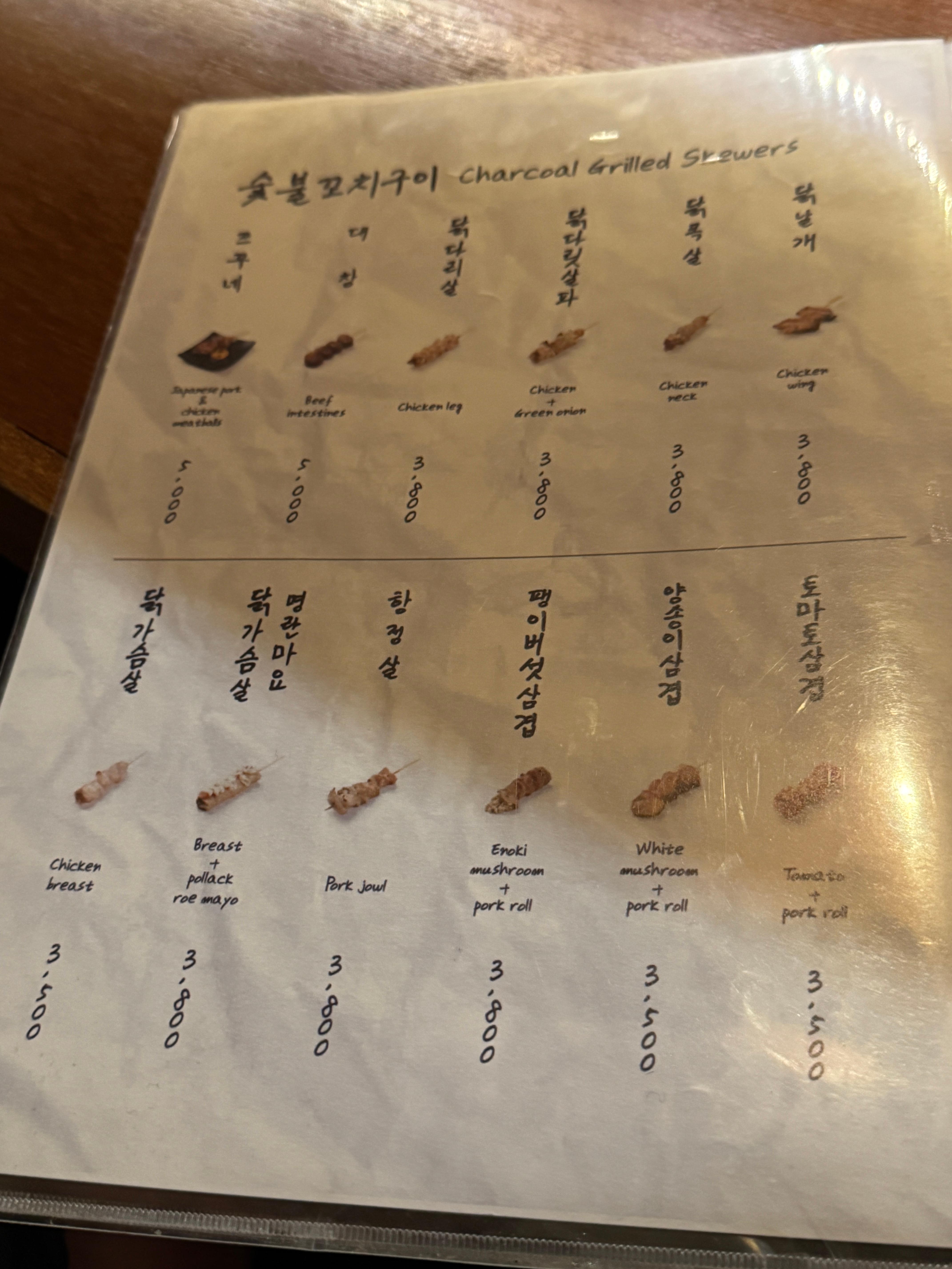 → 쯔쿠네, 닭다릿살파, 닭날개, 토마토삼겹, 염통(?).